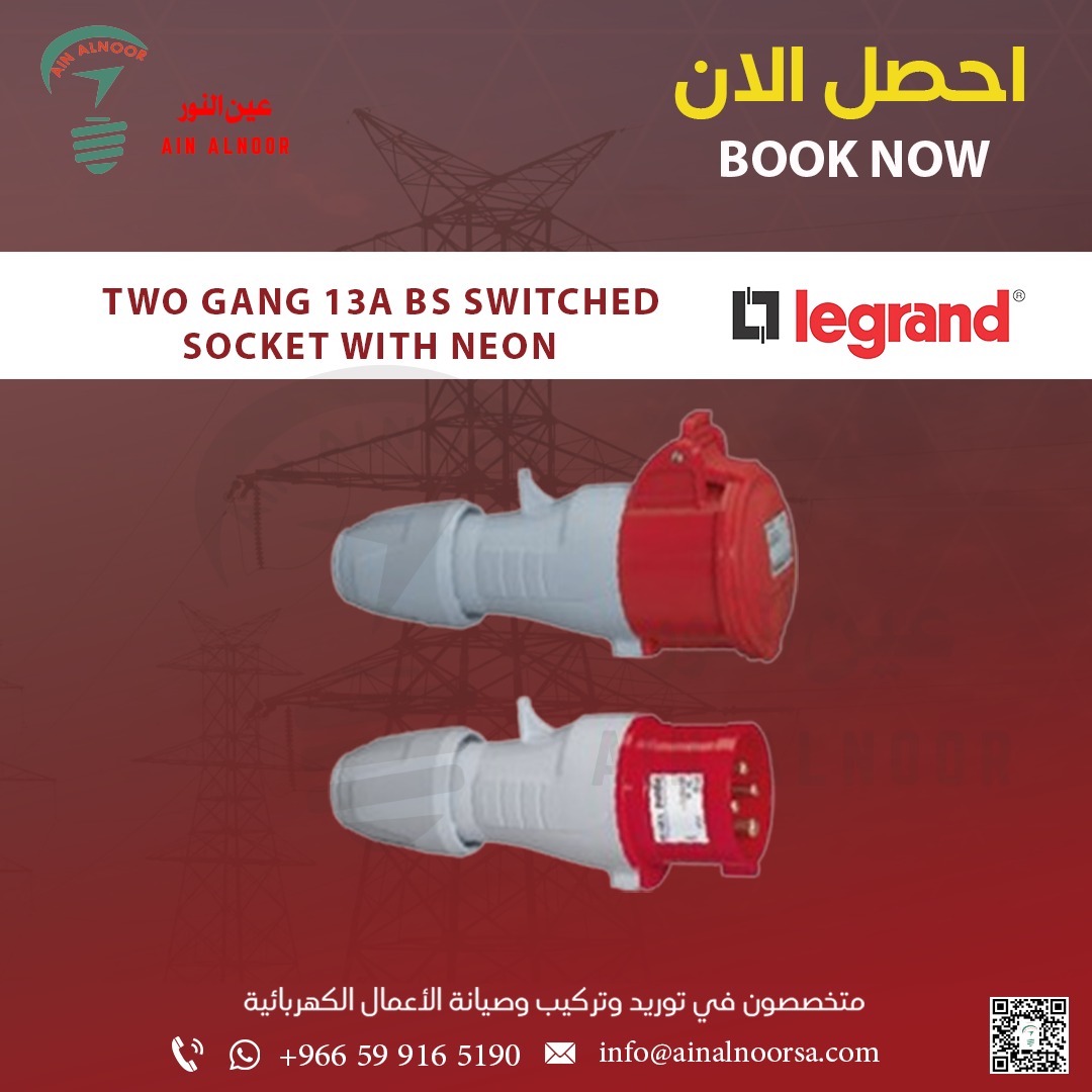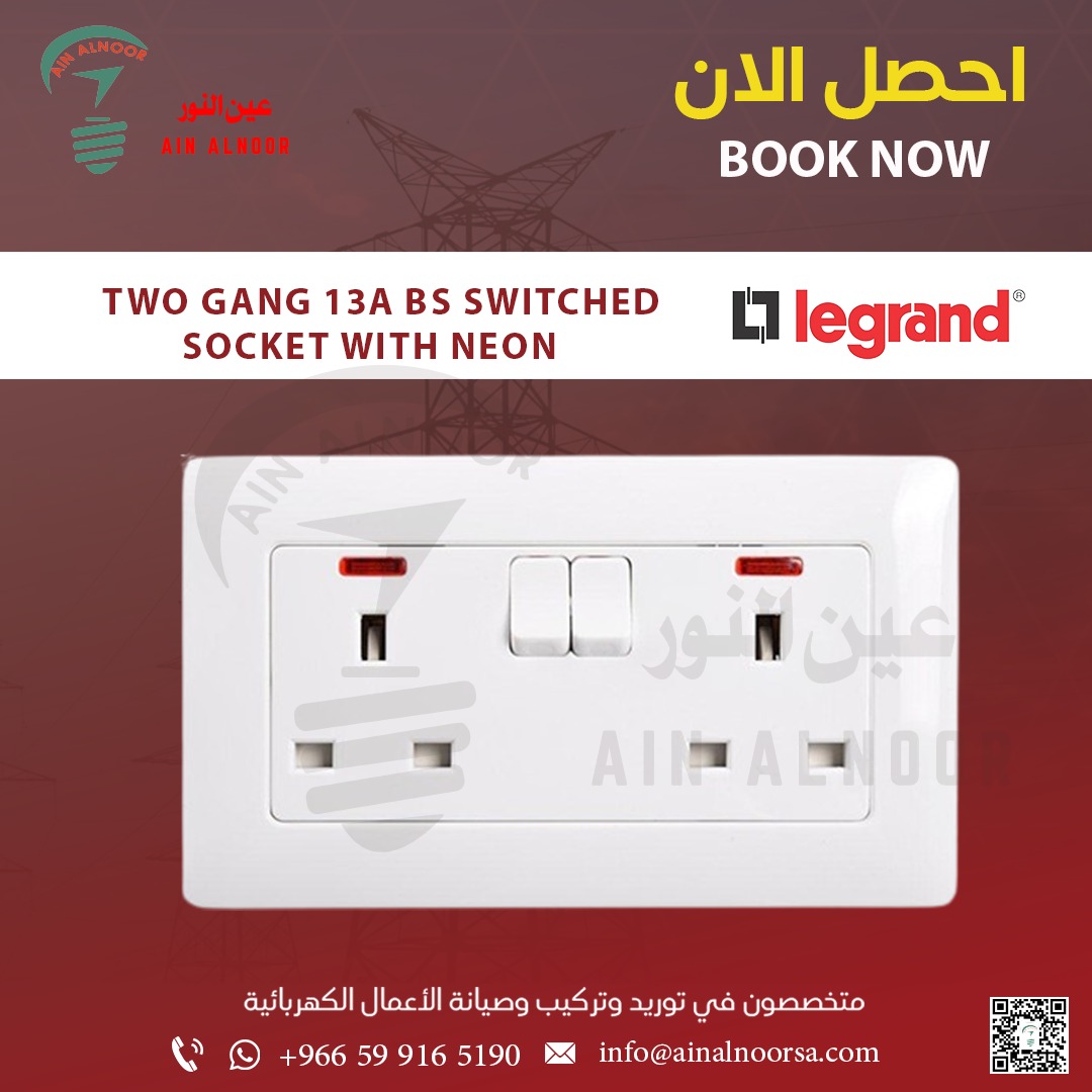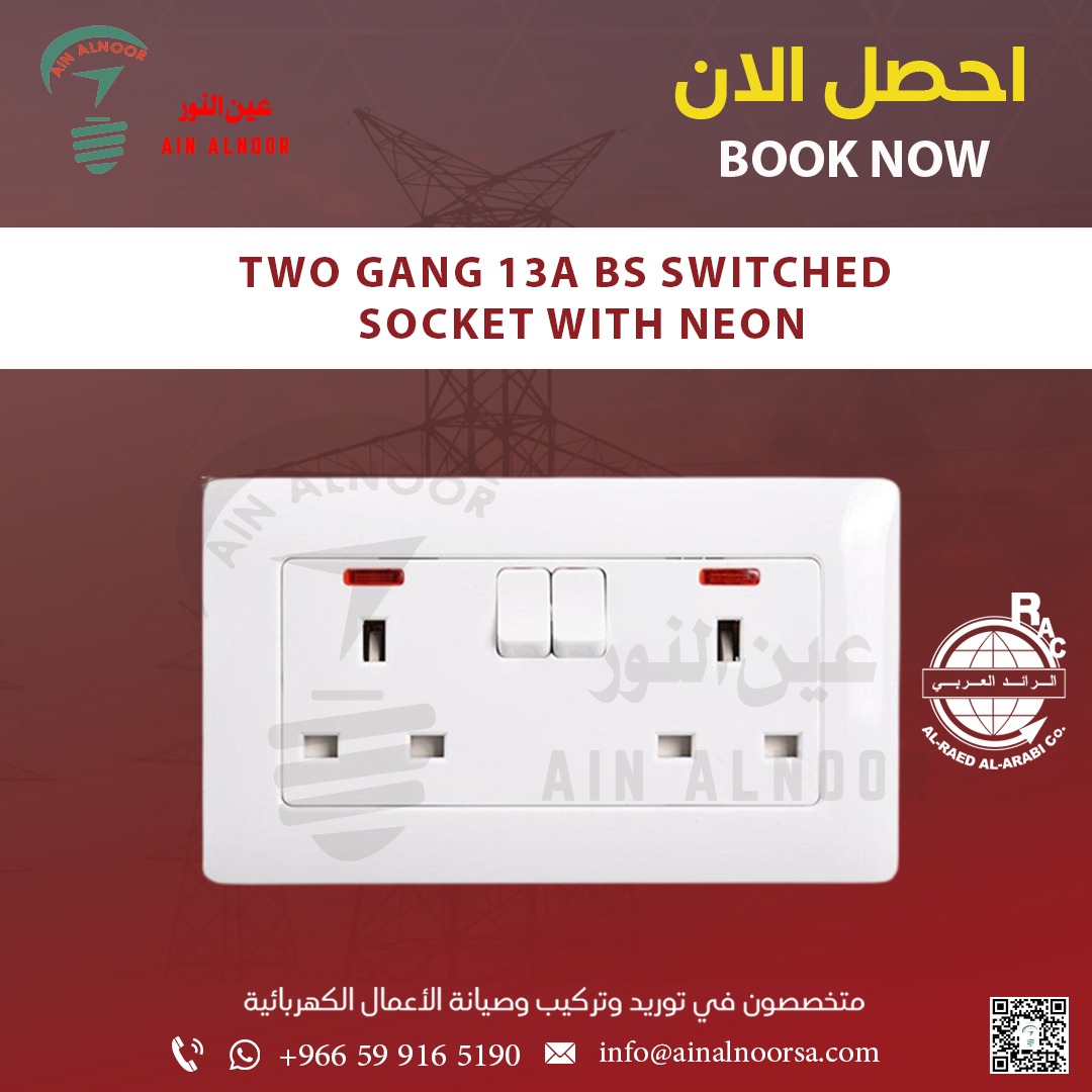 TWO GANG 13A BS SWITCHED SOCKET WITH NEON