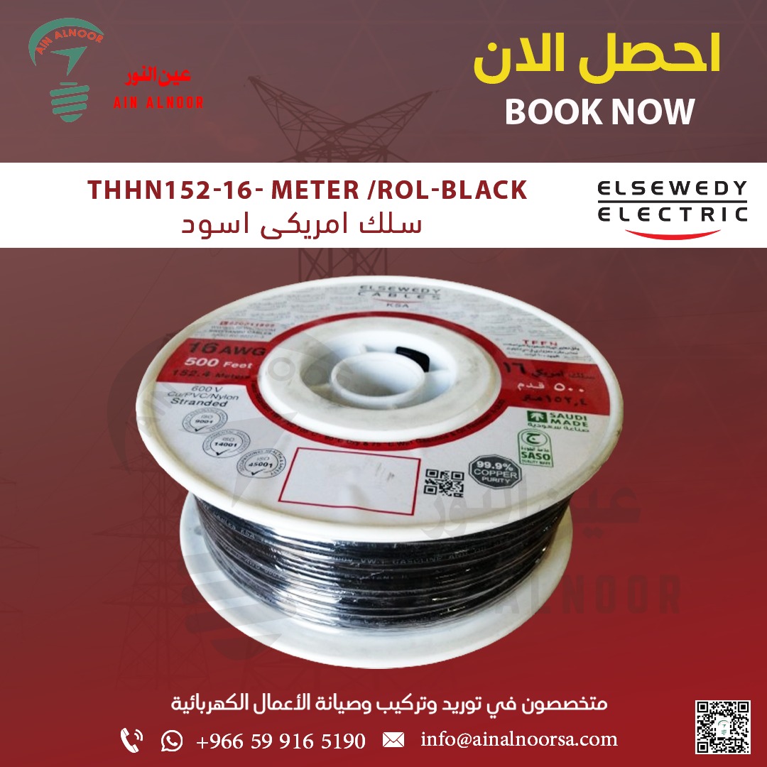 SW-16 B-AWG -THHN-16-152 METER /ROL-BLACK كيبل-ROL=152 M